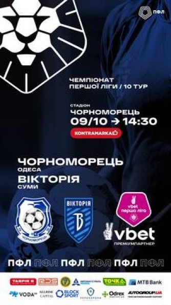 VBET Перша ліга, 10-й тур, ФК Чорноморець (Одеса) - Вікторія (Суми)